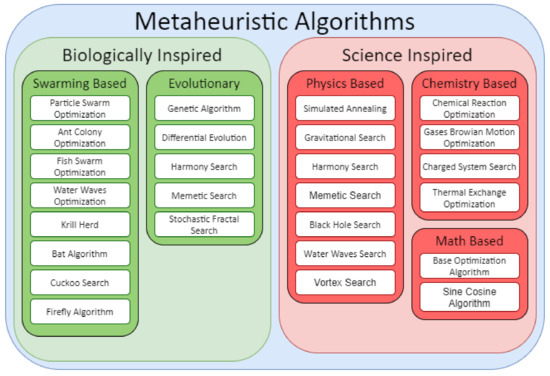 Classifications of Different Metaheuristic Algorithms. Compiled using information from [27,28,29,30,31,32,33].