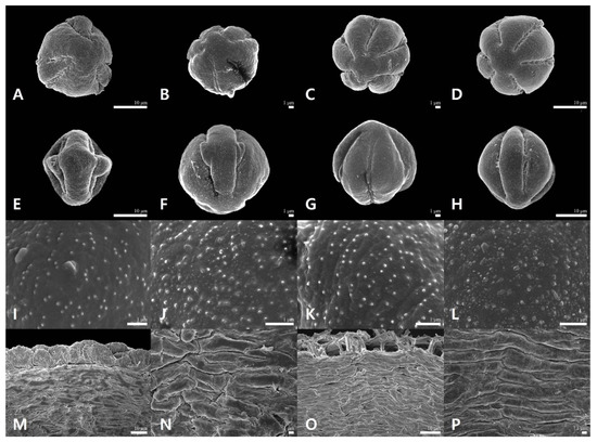 Palynological characteristics have also been proven to be useful for systematic implications [17,18,24,25,26,27] and taxonomic delimitation [27,28,29,30] of various groups in Rosaceae. In particular, the orbicules, the small sporopollenin particles on the inner locule walls, have proven to be a taxonomically and systematically useful palynological characteristic within Rosaceae [31,32,33]. Although pollen morphology of Sanguisorba has been studied by Chung et al. [17] and Lee et al. [18], the critical-point drying (CPD) method, which negates the side effects of the acetolysis method, such as distortion of shape, has not been investigated. Moreover, the orbicules of Sanguisorba have not yet been studied.
