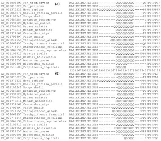 The following are available online at https://www.mdpi.com/article/10.3390/genes12111809/s1, Primate_HTT_MAFFT.fas.