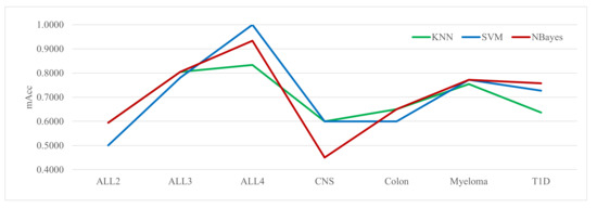 - Golub, T.R.; Slonim, D.K.; Tamayo, P.; Huard, C.; Gaasenbeek, M.; Mesirov, J.P.; Coller, H.; Loh, M.L.; Downing, J.R.; Caligiuri, M.A.; et al. Molecular classification of cancer: Class discovery and class prediction by gene expression monitoring. Science 1999, 286, 531–537. [Google Scholar] [CrossRef] [PubMed]