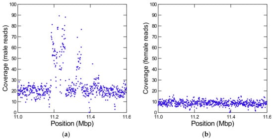 - Carvalho, A.B.; Clark, A.G. Efficient identification of Y chromosome sequences in the human and Drosophila genomes. Genome Res. 2013, 23, 1894–1907. [Google Scholar] [CrossRef]