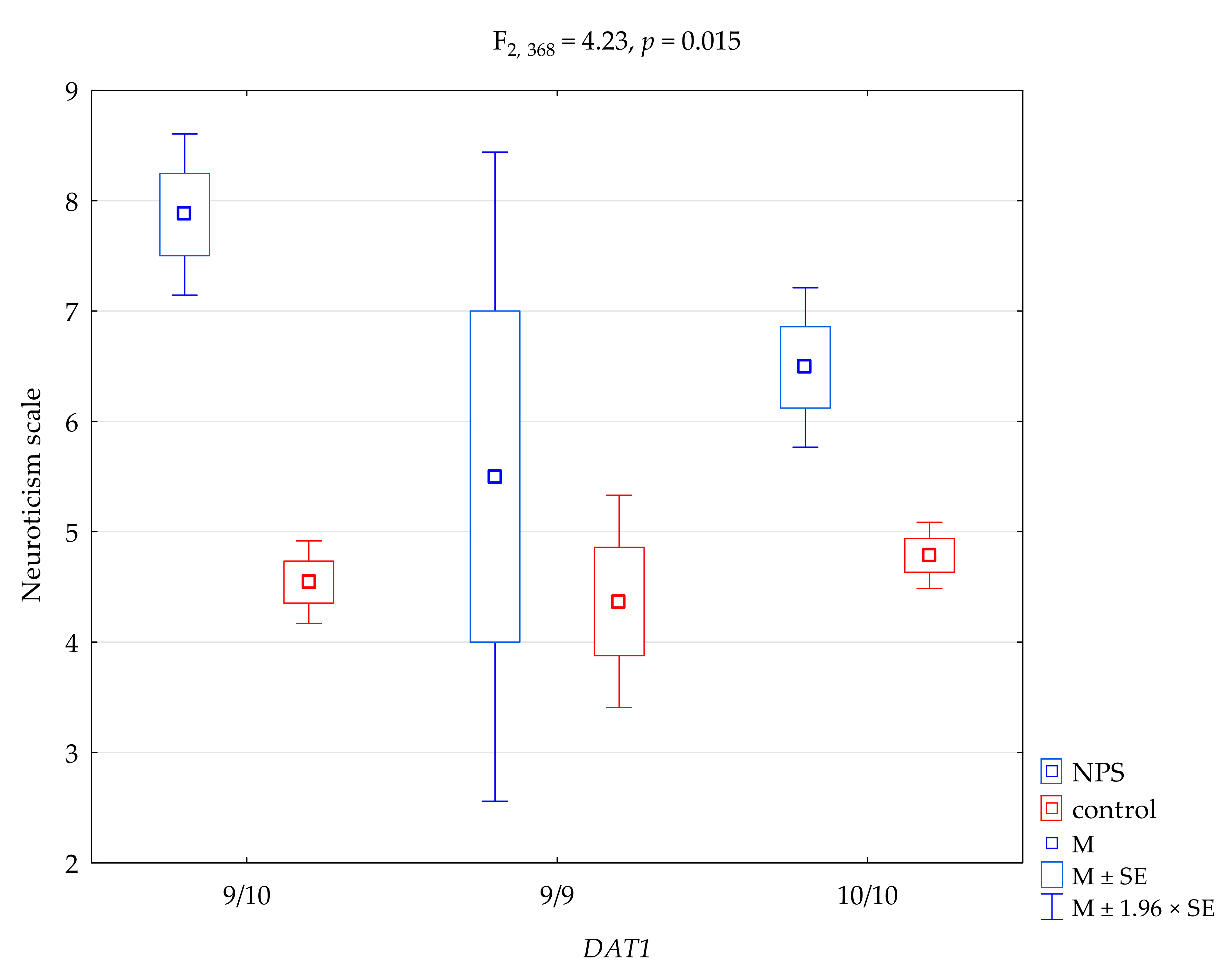 | STAI/NEO Five-Factor Inventory | DAT1 | ANOVA | |||||||