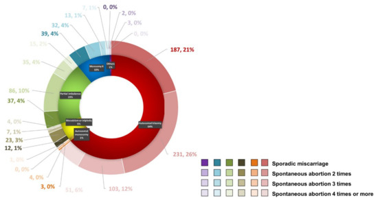 Spontaneous abortion is the most common complication of pregnancy in women of childbearing age, accounting for about 15% of clinical pregnancy cases during the first trimester [1]. Excluding sporadic miscarriage (one natural abortion history, sporadic abortion; SA), recurrent pregnancy loss (RPL) is defined by the European Society for Human Reproduction and Embryology (ESHRE) November 2017 guidelines as the loss of two or more pregnancies [2], and recurrent miscarriage (RM) by the Royal College of Obstetricians and Gynecologists (RCOG) as at least three consecutive miscarriages before 24 weeks of gestation [3]. The incidence of the latter is 5% and has shown to be exhibiting an increasing trend in recent years [4]. The repeated loss of pregnancy is physically, mentally, and emotionally challenging for both doctors and couples trying to conceive, especially on the mother.