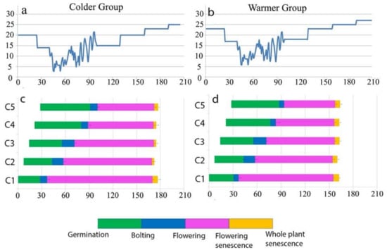 - Anderson, J.T.; Inouye, D.W.; McKinney, A.M.; Colautti, R.I.; Mitchell-Olds, T. Phenotypic plasticity and adaptive evolution contribute to advancing flowering phenology in response to climate change. Proc. R Soc. Lond. 2012, 279, 3843–3852. [Google Scholar] [CrossRef]