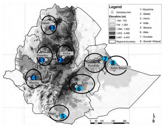 - Kefena, E.; Dessie, T.; Han, J.; Kurtu, M.; Rosenbom, S.; Beja-Pereira, A. Morphological diversities and ecozones of Ethiopian horse populations. Anim. Genet. Resour./Ressour. Génét. Anim./Recur. Genét. Anim. 2012, 50, 1–12. [Google Scholar] [CrossRef]