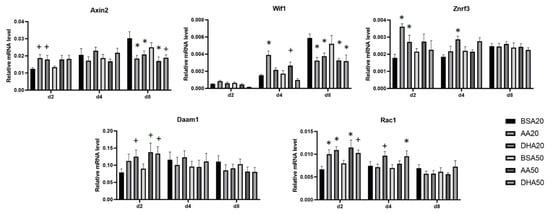 3.4. AA and DHA Affects the mRNA Abundance of Genes Involved in Wnt Signaling Pathway