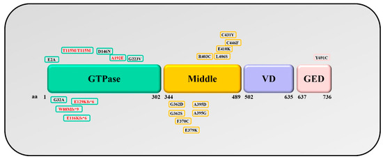 Recently, for the first time, a patient has been described with a de novo heterozygous variant in the GED domain of Drp1. The patient is a 27-year-old girl with a history of neonatal hypotonia progressed to spasticity, developmental delays, and static encephalopathy. Functional studies in Drosophila suggest a dominant-negative mechanism effect of this variant, due to the mutation failed to rescue Drosophila drp1 lethality and caused an altered peroxisomal phenotype [129].