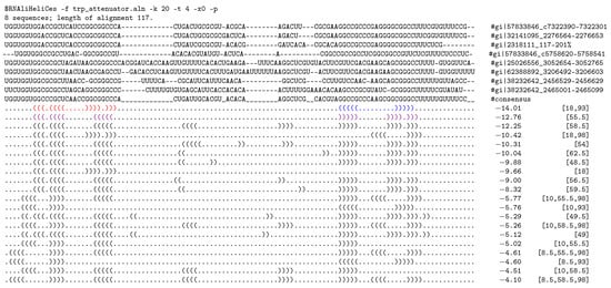 - Seliverstov, A.V.; Putzer, H.; Gelfand, M.S.; Lyubetsky, V.A. Comparative analysis of RNA regulatory elements of amino acid metabolism genes in Actinobacteria. BMC Microbiol. 2005, 5, 54. [Google Scholar] [CrossRef]