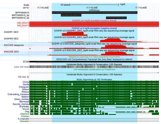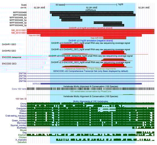 - Kozomara, A.; Birgaoanu, M.; Griffiths-Jones, S. miRBase: From microRNA sequences to function. Nucleic Acids Res. 2019, 47, D155–D162. [Google Scholar] [CrossRef] [PubMed]