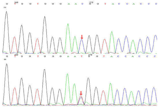 Sequence analyses of the CLCNKB gene and the identified CLCNKB mutations. (A) A homozygous mutation red arrow) (c.1171T>C, p.Trp391Arg) in CLCNKB was identified in the index patient and II-3, II-4. (B) A heterozygous mutation (red arrow) (c.1171T>C, p.Trp391Arg) in CLCNKB was identified in t I-1, I-2, II-5, III-1.