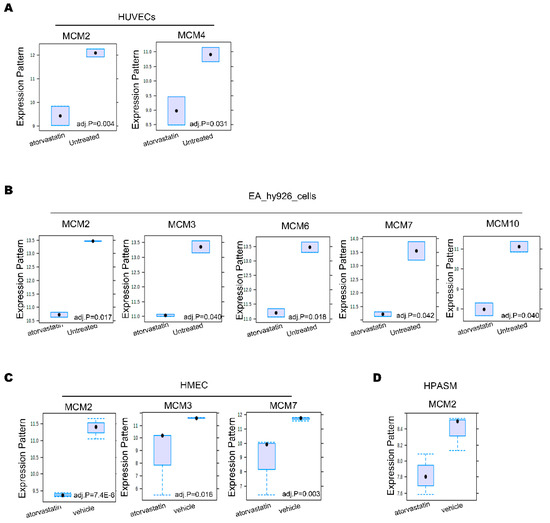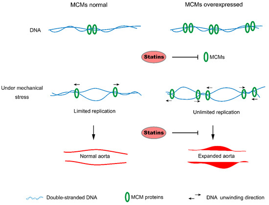 Liang, Z.; Zhang, Y.; Chen, Q.; Hao, J.; Wang, H.; Li, Y.; Yan, Y. Analysis of MCM Proteins’ Role as a Potential Target of Statins in Patients with Acute Type A Aortic Dissection through Bioinformatics. Genes 2021, 12, 387. https://doi.org/10.3390/genes12030387