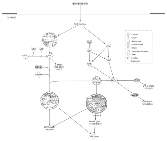 Role of BRCA in DNA Damage Response within LS line of Japanese quail. Molecular interaction and symbols are the same as described in Figure 3.
