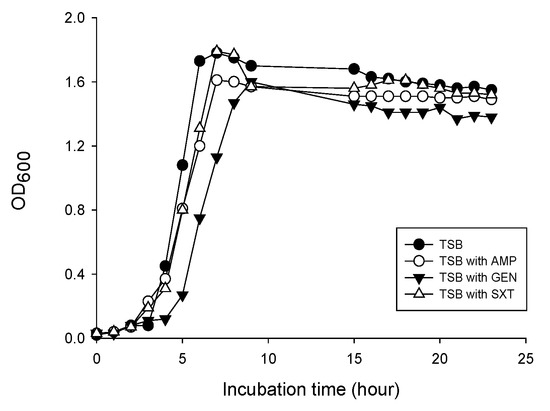 MICs of AMP, GEN, and SXT (trimethoprim:sulfamethoxazole, 1:5) were determined by microdilution methods according to the Clinical Laboratory Standards Institute (CLSI) [20]. S. aureus ATCC 29213 was used as a quality control strain.