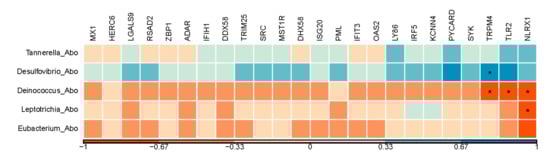 3.4. rRNA Transcriptome Analysis of Abomasum Microbial Community and Its Association with Host mRNA Expression Changes