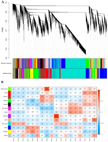 - Langfelder, P.; Horvath, S. WGCNA: An R package for weighted correlation network analysis. BMC Bioinform. 2008, 9, 559. [Google Scholar] [CrossRef] [PubMed]