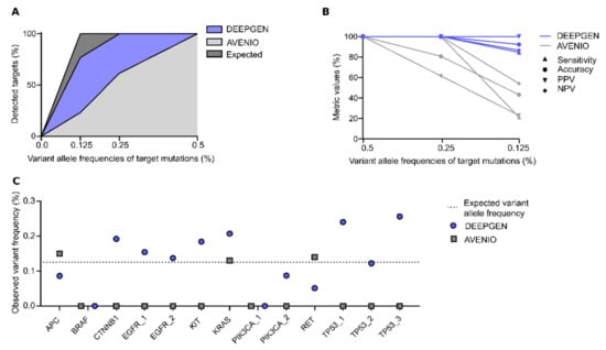 - Choi, J.; Dannebaum, R.; Singh, A.; Foley, R.; Dinis, J.; Choi, C.; Min, B.; Li, J.; Feng, L.; Casey, F.; et al. Abstract 3648: Performance of the AVENIO ctDNA assays across multiple high-throughput next-generation sequencing platforms. Cancer Res. 2018, 78, 3648. [Google Scholar] [CrossRef]