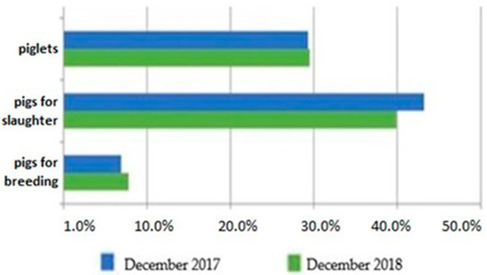Pig population structure in December 2017 and 2018. http:/stat.gov.pl (accessed on 2 October 2019).