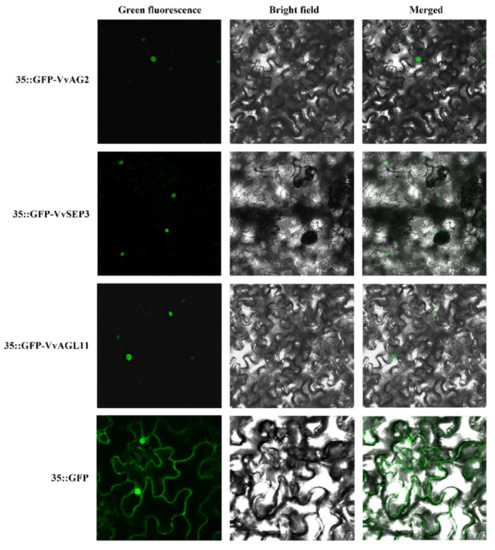 - Malabarba, J.; Buffon, V.; Mariath, J.E.; Gaeta, M.L.; Dornelas, M.C.; Margis-Pinheiro, M.; Pasquali, G.; Revers, L.F. The MADS-box gene Agamous-like 11 is essential for seed morphogenesis in grapevine. J. Exp. Bot. 2017, 68, 1493–1506. [Google Scholar] [CrossRef] [PubMed]