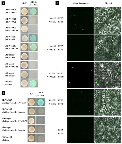 4.4. VvAG2, VvSEP3 and VvAGL11 Proteins of MADS-box Family Participate in the Formation of Grape Ovules by Forming the Tetrameric Complex