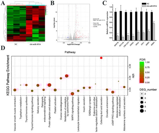 3.1. Chi-miR-8516 Downstream Genes and Enrichment