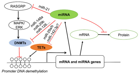 - Pan, W.; Zhu, S.; Yuan, M.; Cui, H.; Wang, L.; Luo, X.; Li, J.; Zhou, H.; Tang, Y.; Shen, N. MicroRNA-21 and microRNA-148a contribute to DNA hypomethylation in lupus CD4+ T cells by directly and indirectly targeting DNA methyltransferase 1. J. Immunol. 2010, 184, 6773–6781. [Google Scholar] [CrossRef]