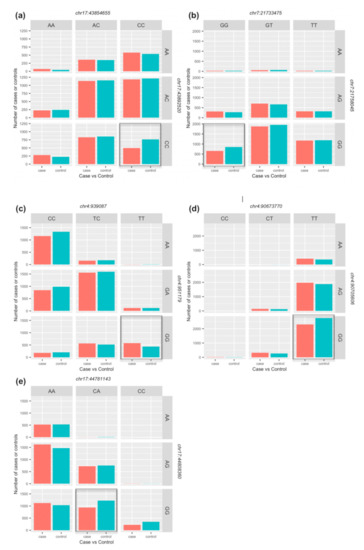 - Jun, G.; Ibrahim-Verbaas, C.A.; Vronskaya, M.; Lambert, J.C.; Chung, J.; Naj, A.C.; Kunkle, B.W.; Wang, L.S.; Bis, J.C.; Bellenguez, C.; et al. A novel Alzheimer disease locus located near the gene encoding tau protein. Mol. Psychiatry 2016, 21, 108–117. [Google Scholar] [CrossRef]