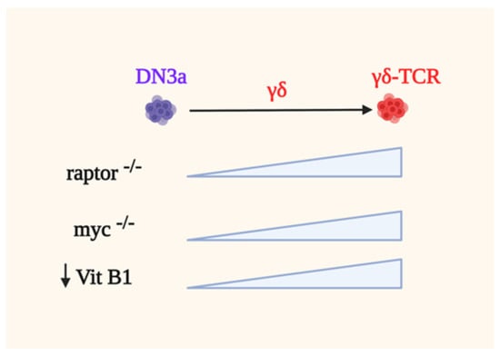γδ-T cell development does not have the same metabolic requirements as αβ-T cells (see Figure 4), although their expansion can be enhanced during impaired αβ-thymocyte development.