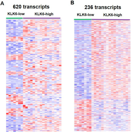 3.5. Differential Analysis of Samples with Overexpressed KLK6
