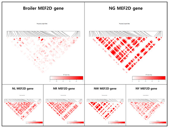 - Shin, J.-H.; Blay, S.; McNeney, B.; Graham, J. LDheatmap: An R function for graphical display of pairwise linkage disequilibria between single nucleotide polymorphisms. J. Stat. Softw. 2006, 16, 1–10. [Google Scholar] [CrossRef]
