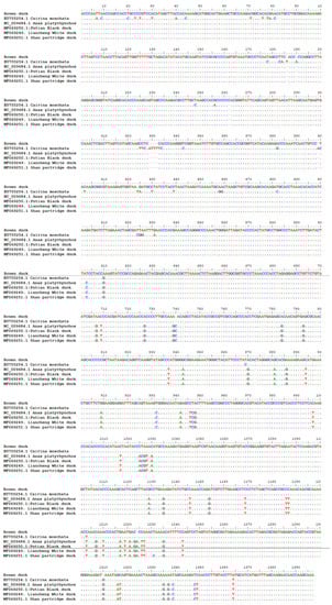 2.3. Sequencing a Part of Rouen Duck mtDNA