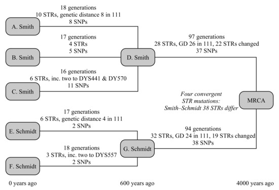 - Balanovsky, O. Toward a consensus on SNP and STR mutation rates on the human Y-chromosome. Hum. Genet. 2017, 136, 575–590. [Google Scholar] [CrossRef]
