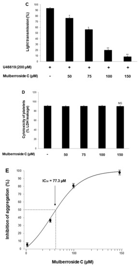 3.1. Mulberroside C Blocks Platelet Aggregaion and Cytotoxicity