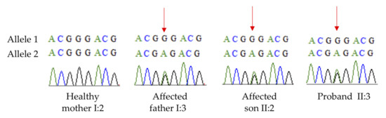 Confirmation of variant by Sanger sequencing of affected and unaffected family members.