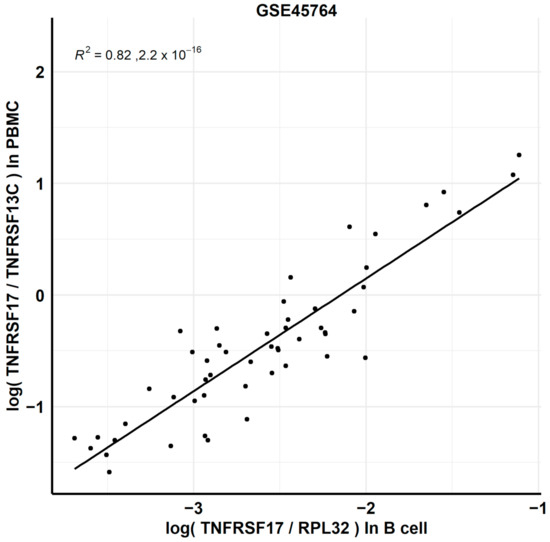 Direct B lymphocyte LS-TA of TNFRSF17 = log(TNFRSF17) − log(TNFRSF13C).