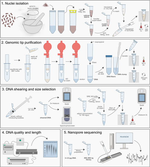 APA StyleVolarić, M., Veseljak, D., Mravinac, B., Meštrović, N., & Despot-Slade, E. (2021). Isolation of High Molecular Weight DNA from the Model Beetle Tribolium for Nanopore Sequencing. Genes, 12(8), 1114. https://doi.org/10.3390/genes12081114