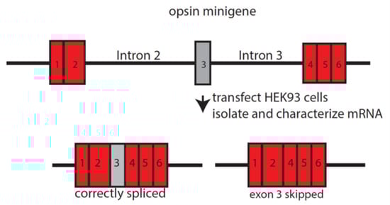 - Ueyama, H.; Muraki-Oda, S.; Yamade, S.; Tanabe, S.; Yamashita, T.; Shichida, Y.; Ogita, H. Unique haplotype in exon 3 of cone opsin mRNA affects splicing of its precursor, leading to congenital color vision defect. Biochem. Biophys. Res. Commun. 2012, 424, 152–157. [Google Scholar] [CrossRef]