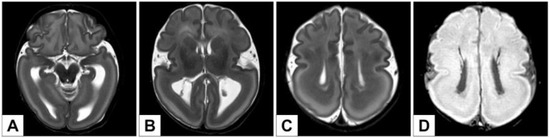 Furthermore, in the 7 patients reported in their work, Kodani et al. also highlighted the simultaneous involvement of other brain structures, in particular, the recurrence of dysmorphic corpus callosum. In all cases, alterations involved the occipital, parietal and temporal regions, mostly sparing the regions placed rostrally to the central sulcus [9] (Supplementary Materials, Table S3).