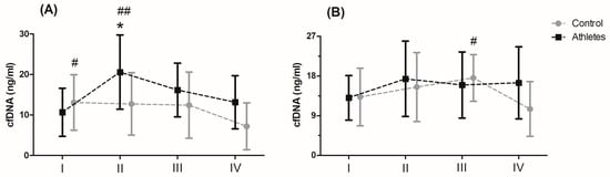 20]. It is already known that high levels of physical activity are associated with metabolic and mechanical muscular damage, leukocyte inflammatory response and DNA damage caused by oxidative stress, which in turn may induce an increase in cfDNA concentration [