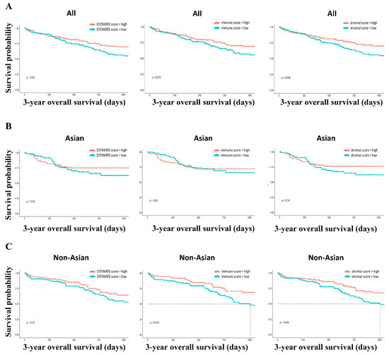 - Mao, M.; Yu, Q.; Huang, R.; Lu, Y.; Wang, Z.; Liao, L. Stromal score as a prognostic factor in primary gastric cancer and close association with tumor immune microenvironment. Cancer Med. 2020, 9, 4980–4990. [Google Scholar] [CrossRef]