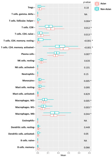APA StyleHuang, L.-H., Hsieh, T.-M., Huang, C.-Y., Liu, Y.-W., Wu, S.-C., Chien, P.-C., & Hsieh, C.-H. (2021). Disparity of Hepatocellular Carcinoma in Tumor Microenvironment-Related Genes and Infiltrating Immune Cells between Asian and Non-Asian Populations. Genes, 12(8), 1274. https://doi.org/10.3390/genes12081274