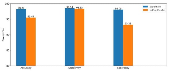 Based on the same dataset of miPlantPreMat, indicators of miPlantPreMat and plantMirP2 were compared.