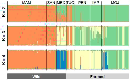 - Pritchard, J.K.; Stephens, M.; Donnelly, P. Inference of Population Structure Using Multilocus Genotype Data. Genetics 2000, 155, 945–959. [Google Scholar] [CrossRef] [PubMed]