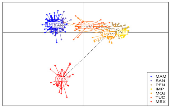 - Excoffier, L.; Lischer, H.E.L. Arlequin suite ver 3.5: A new series of programs to perform population genetics analyses under Linux and Windows. Mol. Ecol. Resour. 2010, 10, 564–567. [Google Scholar] [CrossRef]