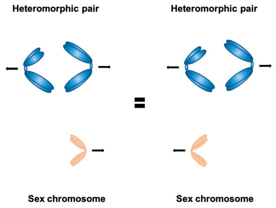 - Daish, T.; Grützner, F. Evolution and meiotic organization of heteromorphic sex chromosomes. Curr. Top. Dev. Biol. 2019, 134, 1–48. [Google Scholar]