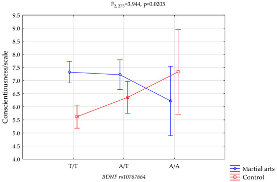 | Martial arts/control × BDNF rs10767664 | F2275 = 3.94 (p = 0.0205 *) | 0.028 | 0.706 | |||||||