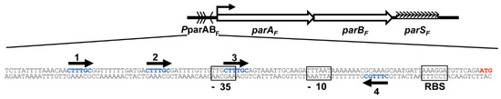 3.4. Is the Promoter Organization with Overlapping IR Motifs a Conserved Feature amongst Type Ia Plasmid Partition Operons?