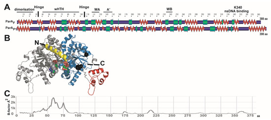- Hester, C.M.; Lutkenhaus, J. Soj (ParA) DNA binding is mediated by conserved arginines and is essential for plasmid segregation. Proc. Natl. Acad. Sci. USA 2007, 104, 20326–20331. [Google Scholar] [CrossRef] [PubMed] [Green Version]