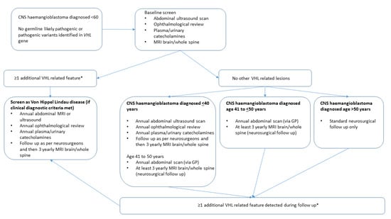 APA StyleFurness, H., Salfity, L., Devereux, J., Halliday, D., Hanson, H., Ruddy, D. M., UK VHL Study Group, Shah, N., Sultana, G., Woodward, E. R., Sandford, R. N., Snape, K. M., & Maher, E. R. (2021). Investigation and Management of Apparently Sporadic Central Nervous System Haemangioblastoma for Evidence of Von Hippel–Lindau Disease. Genes, 12(9), 1414. https://doi.org/10.3390/genes12091414