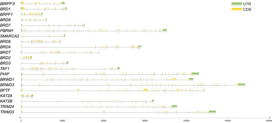 - Haynes, S.R.; Dollard, C.; Winston, F.; Beck, S.; Trowsdale, J.; Dawid, I.B. The bromodomain: A conserved sequence found in human, Drosophila and yeast proteins. Nucleic Acids Res. 1992, 20, 2603. [Google Scholar] [CrossRef] [PubMed]