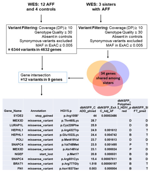 | MEX3D | 2 | RNA binding protein, may be involved in post-transcriptional regulatory mechanisms | Found mutated in three sisters with AFF | Roca-Ayats N, et al. 2018 [12] |